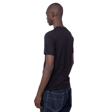 Black T-shirt, regular fit. Large oversized graphic screen printed on front.