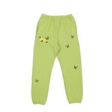 A time honored FELT staple, the embroidered butterfly hoodie. Sage green sweatpants with drawstring and elasticated waist and bottom cuffs. Emroidered FELT workwear logo at right pocket with embroidered butterflies all over.