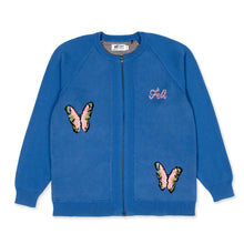 Front butterfly knit art / back web knit art