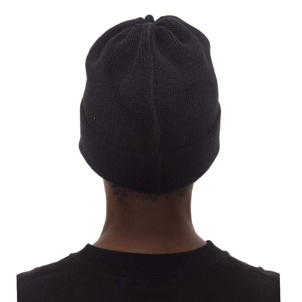 Black classic watch cap with N.HOOLYWOOD TEST PRODUCT EXCHANGE SERVICE printed on the side. Curve finished by single-sided knitting and a folded width for a comfortable fit. Unisex. Cotton acrylic thread with good coloring.