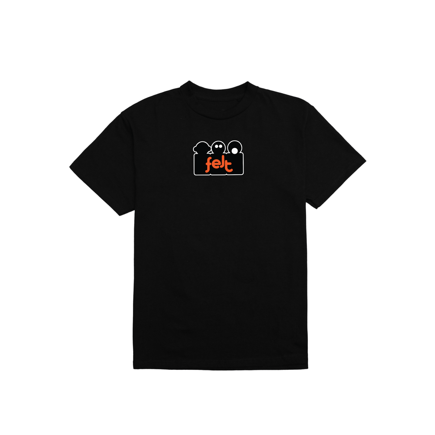Black FELT F/W 21 T-shirt with a screenprinted graphic of tekno trio FELT logo.