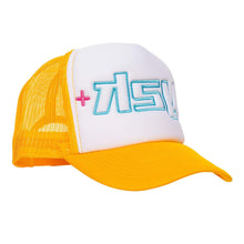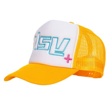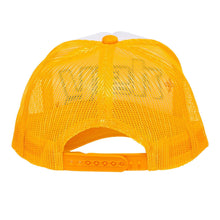 One size, snap back enclosure. White front with yellow mesh back with blue embroidered y2K logo.