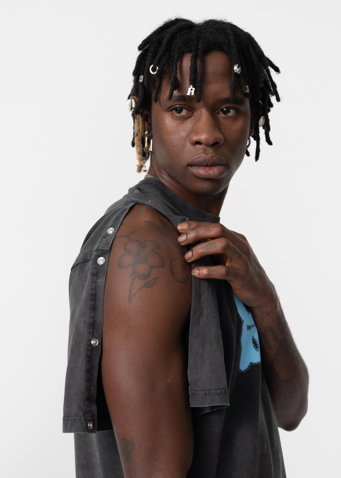 100% GOTS certified cotton shortleeve T-shirt. Introducing new design detail, sleeves are cut open and come with snap buttons. Fun to layer with t-shirt or shirt for the autumn winter styles. Made in Portugal with love.