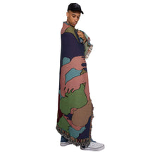 From Carne Bollente Spring/Summer 22. Multicolored blanket showing ambiguiously abstract bodies intertwined. Multi-colored contrasted fringe. Dimensions 127×152 cm/ 50×60 inch95% Cotton, 5% Poly