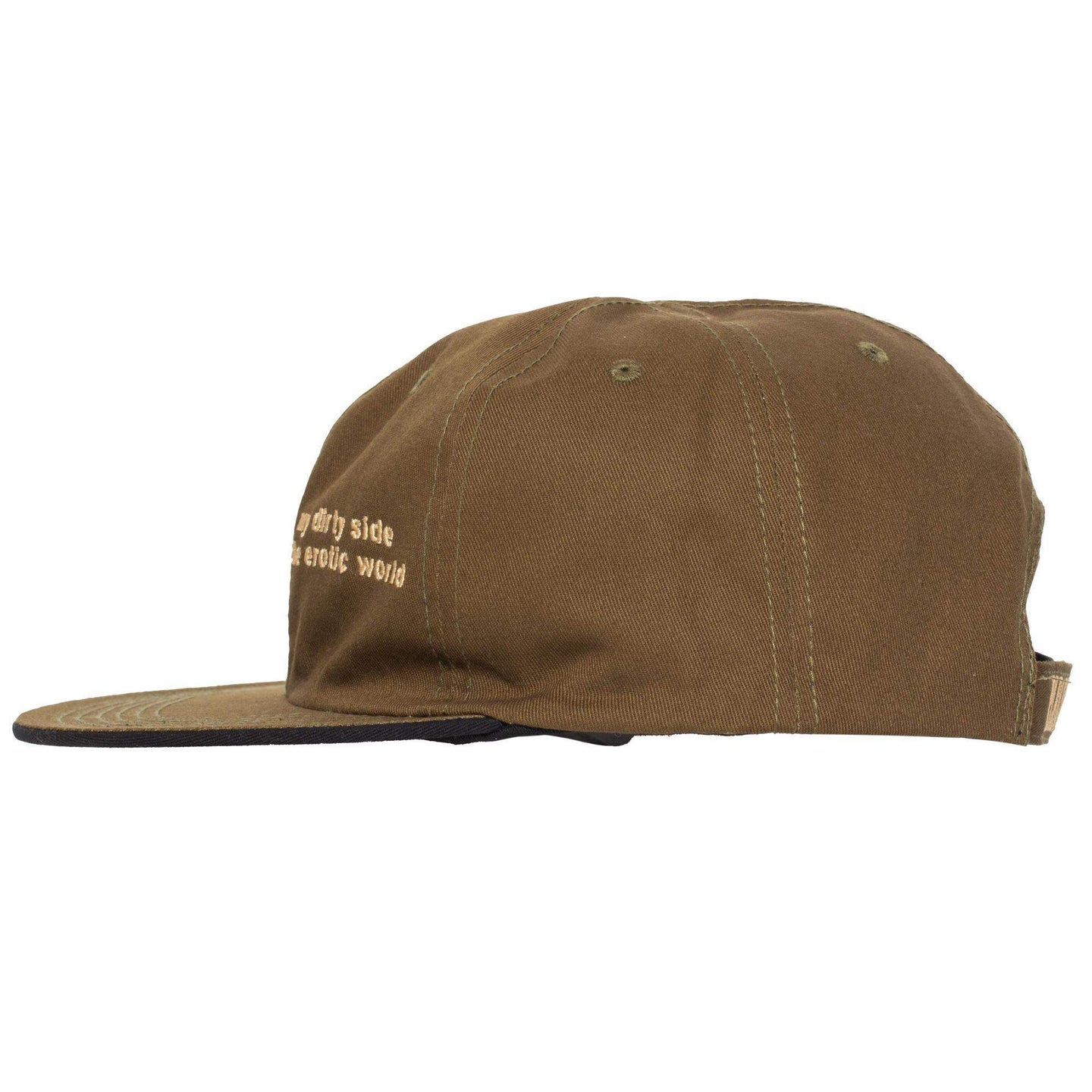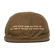 2 sides 2 sayings 2 mesages - Reversible canvas cap. Embroidered logo on black front, emroidered saying on brown reverse side. "I lost touch with my dirty side so I had to revisit the erotic world." Velcro enclosure on back with ebroidered logo on brown side.