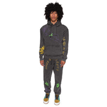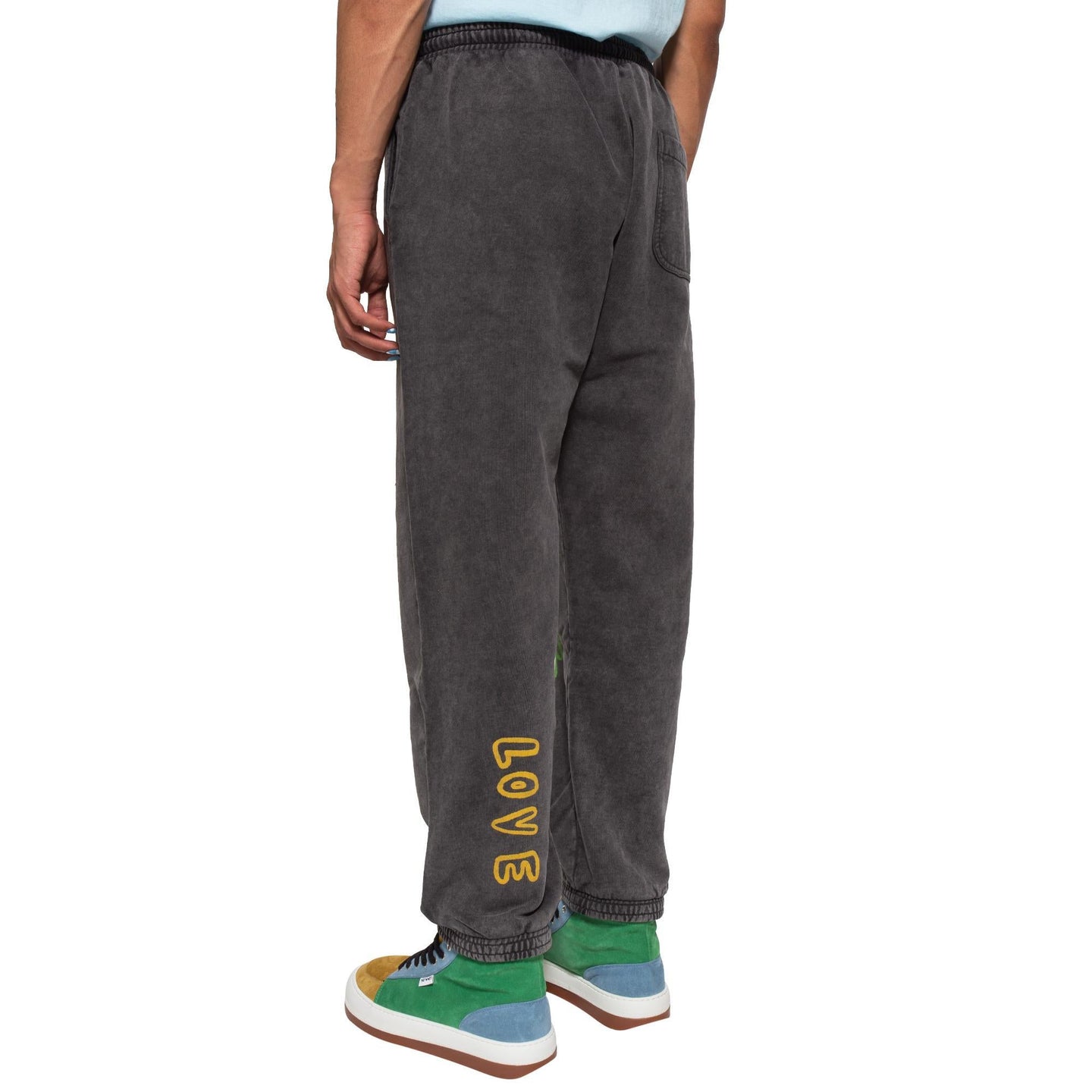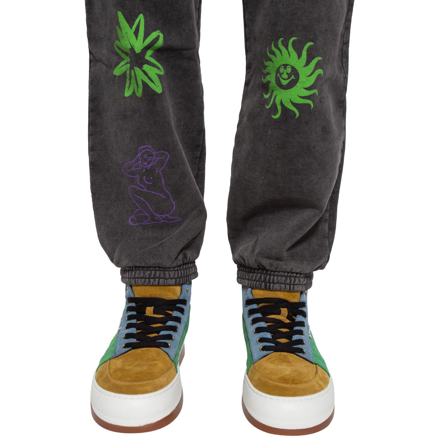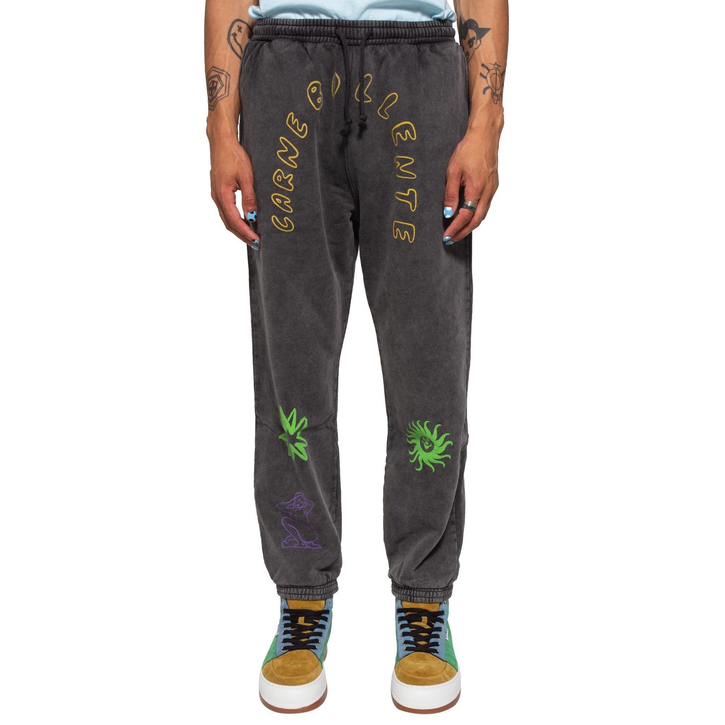 Carne Bollente washed black sweat pants. Sexy prints on the front and on the bottom back of left leg. Spread the sex positivity.