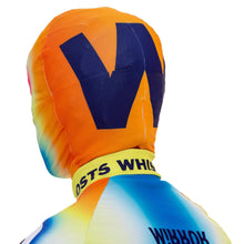 Walter Van Beirendonck's Ghost Morph Mask was released alongside the Ghost Bike Tops and leggings as part of the S/S 21 collection. An elastic stretch mask with zipper closure on the back, featuring a ghostly orange to blue gradient. With a ghostly stylized face on the front and a huge W on the back, this mask is the best way to completely hide but totally stand out at the same time.