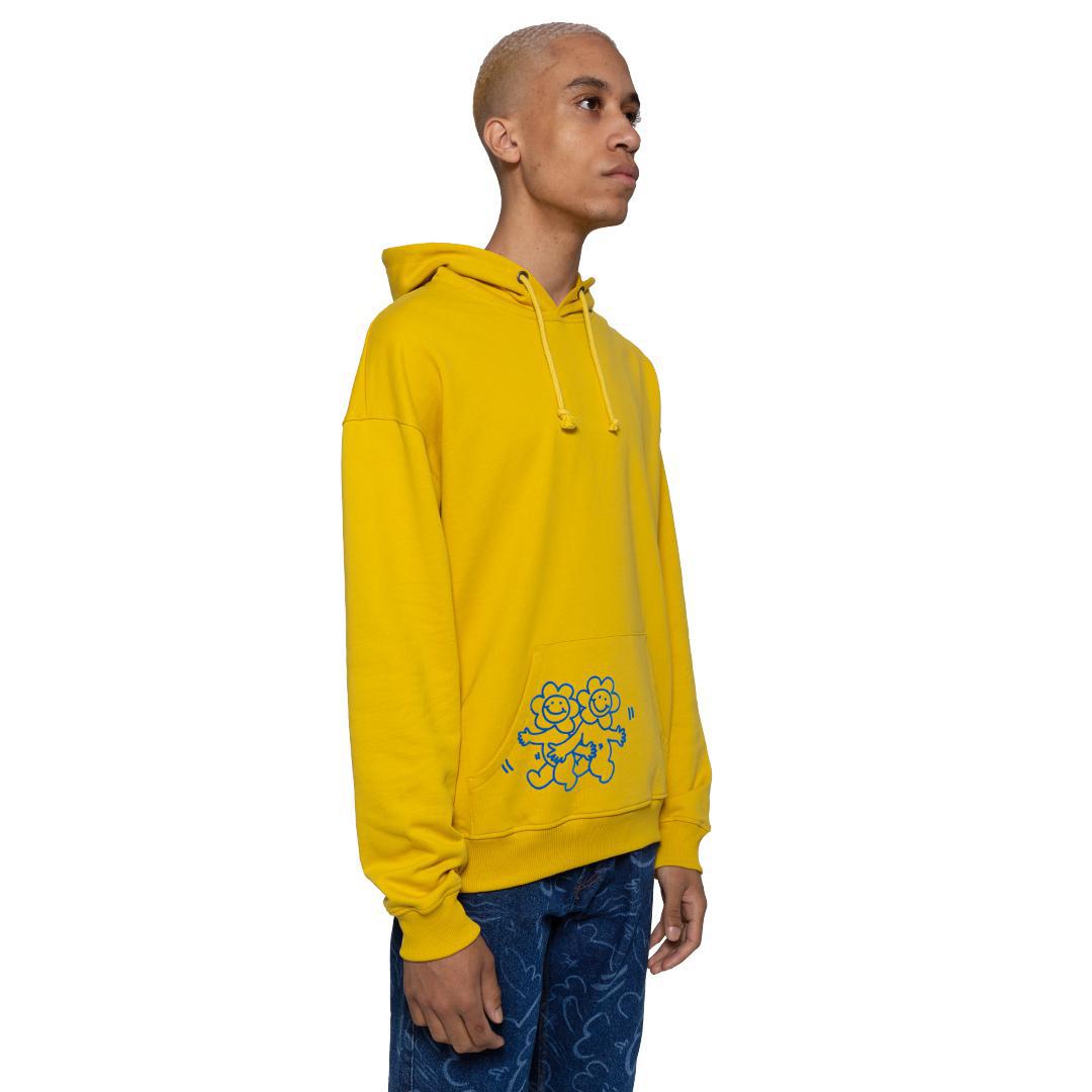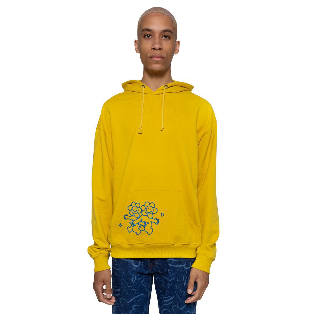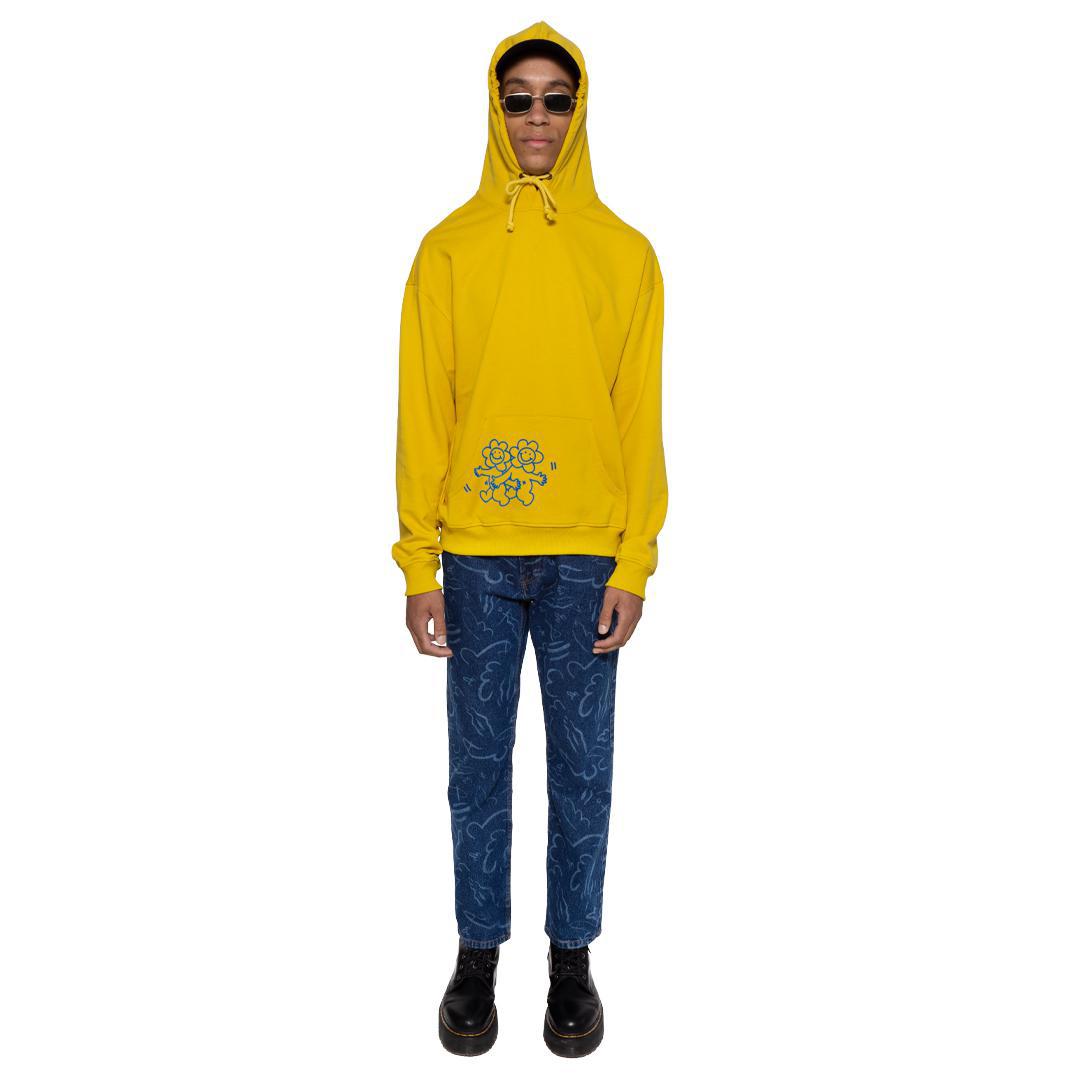 From Carne Bollente Spring/Summer 22. Mustard hoodie with 3D flock printed graphics on the front pocket and back. Standard fit.