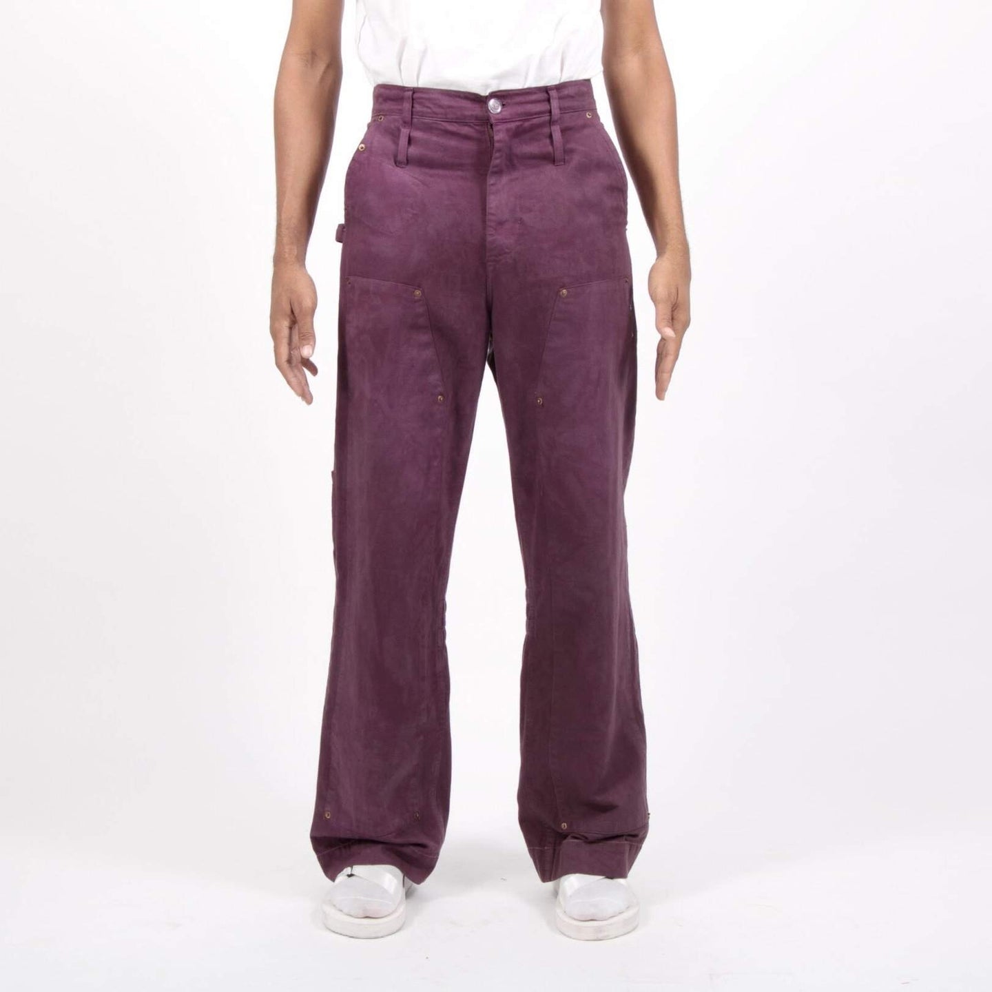 Alex Mullins provides us with worker jeans featuring subtle panel detailing down the front, strip detailing at the back and two oversized flap pockets and double belt loops. Each piece is handmade and unique!
