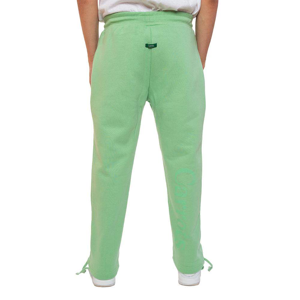 Sage green sweatpants with drawstring waistband and cuff. Carrots logo and exterior back tab.