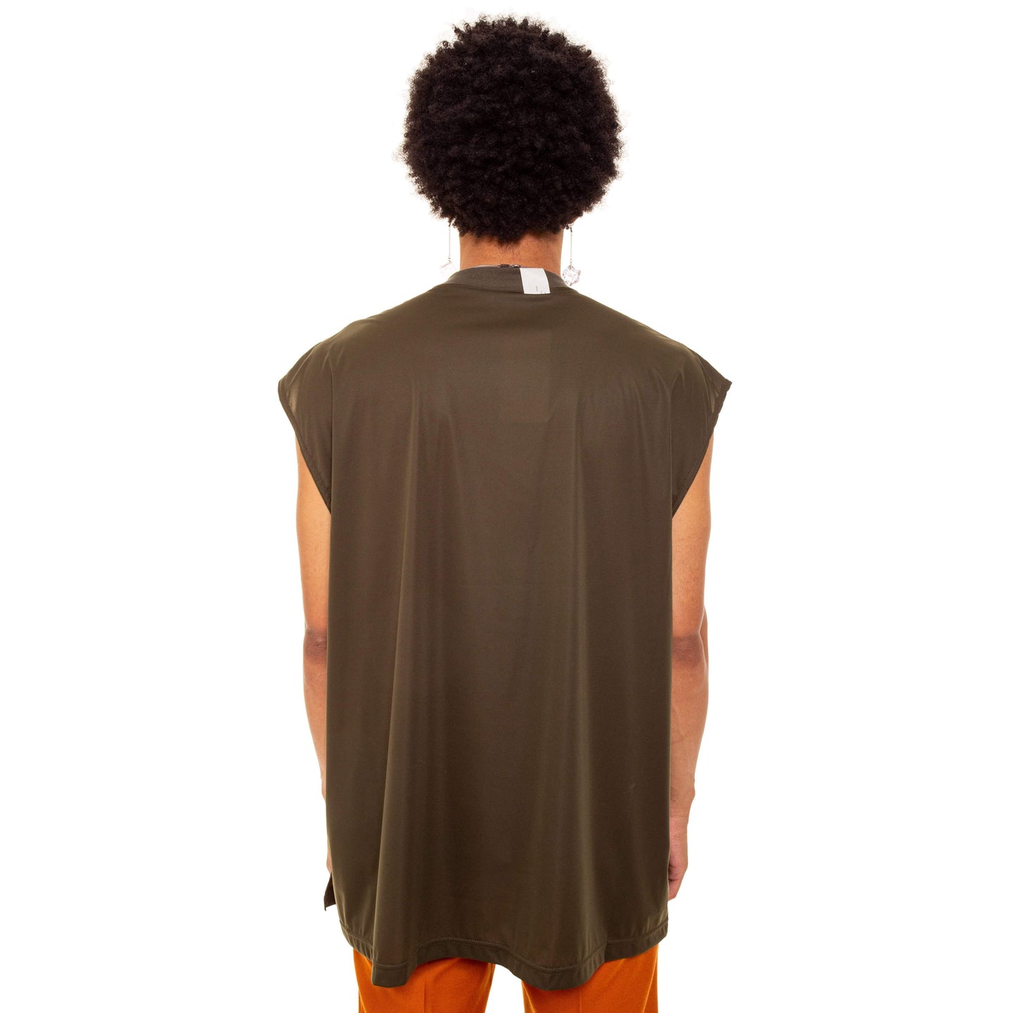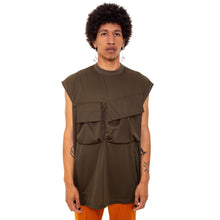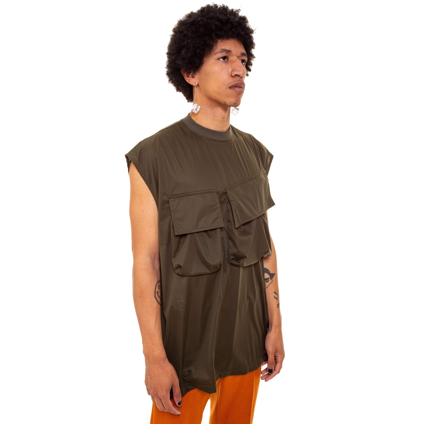 Sleeveless oversized polyester top with two large chest pockets.