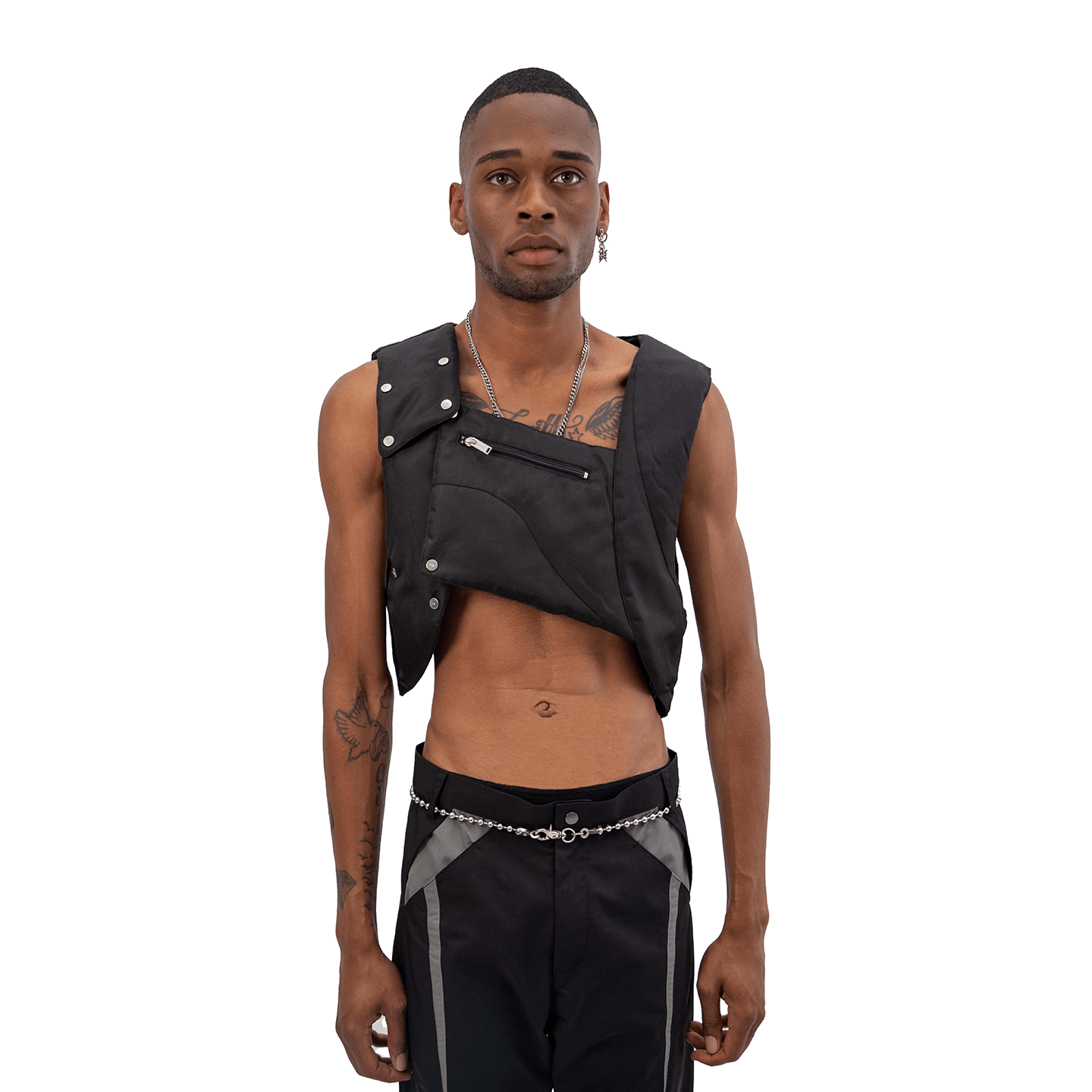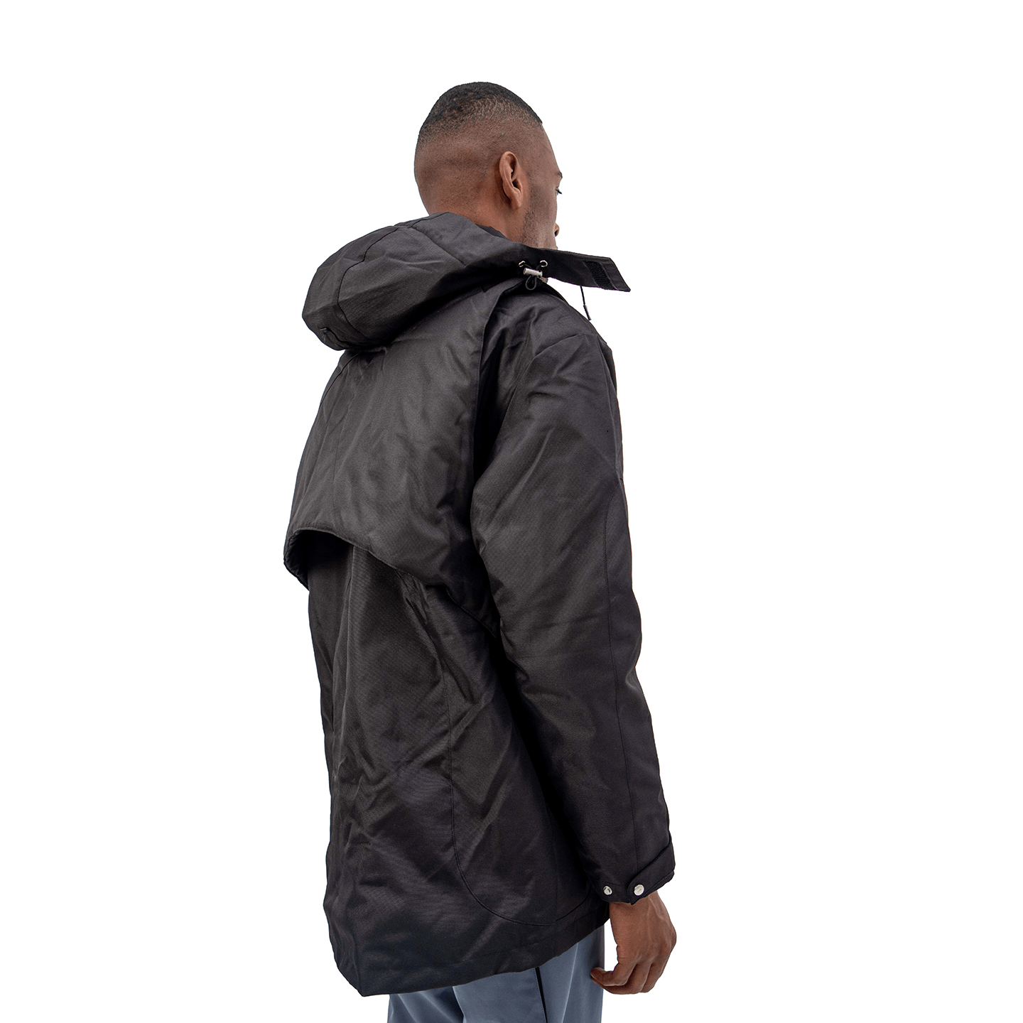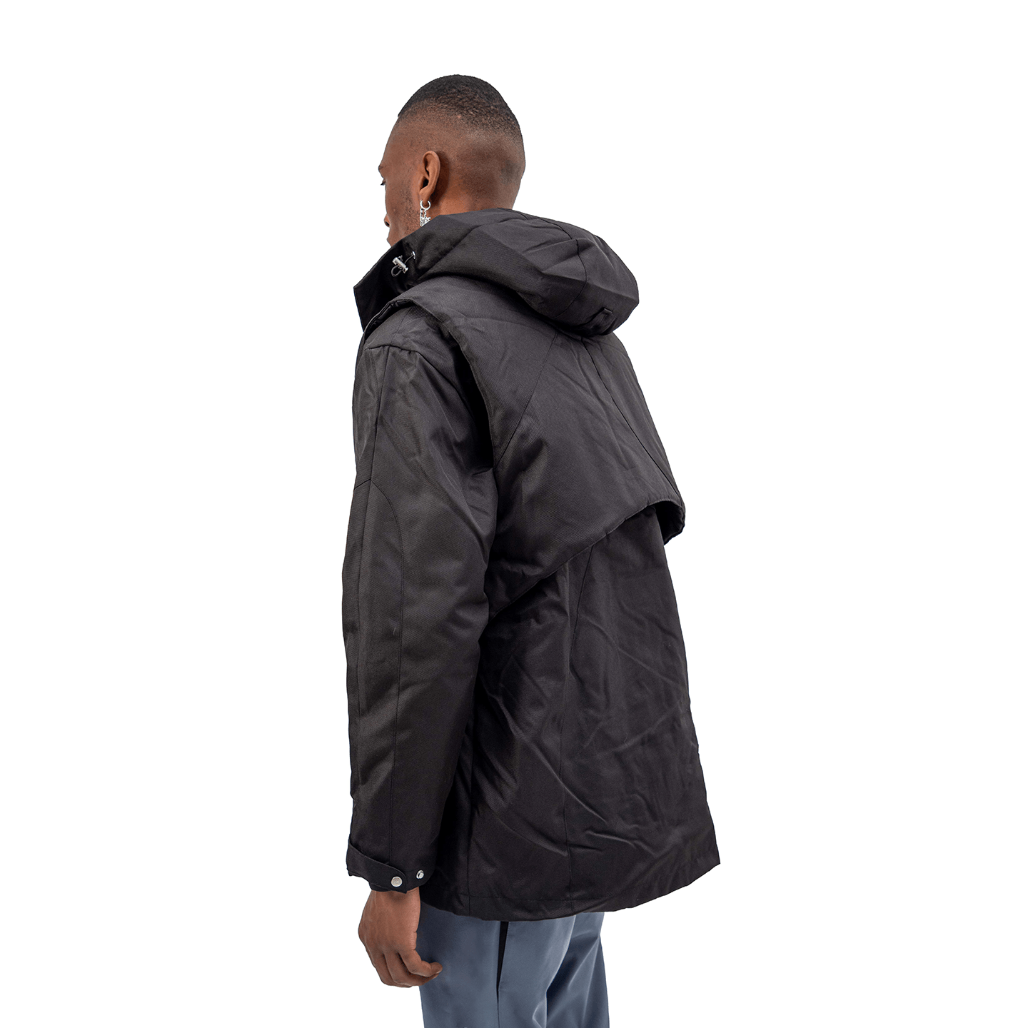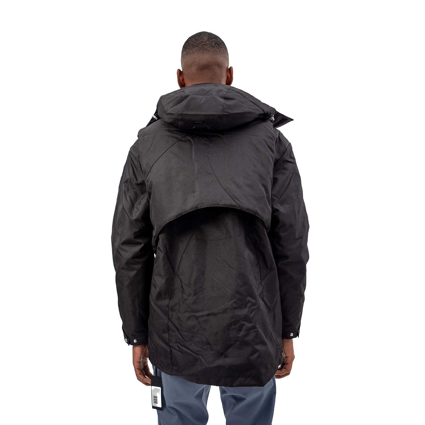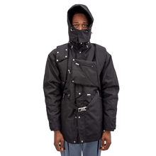 Heliot Emil water repelant layered vest parka. Inspired by Arctic Parkas, but immersed in functional tactical precision. Complete with an adjustable waist belt and silver hardware trimmings.