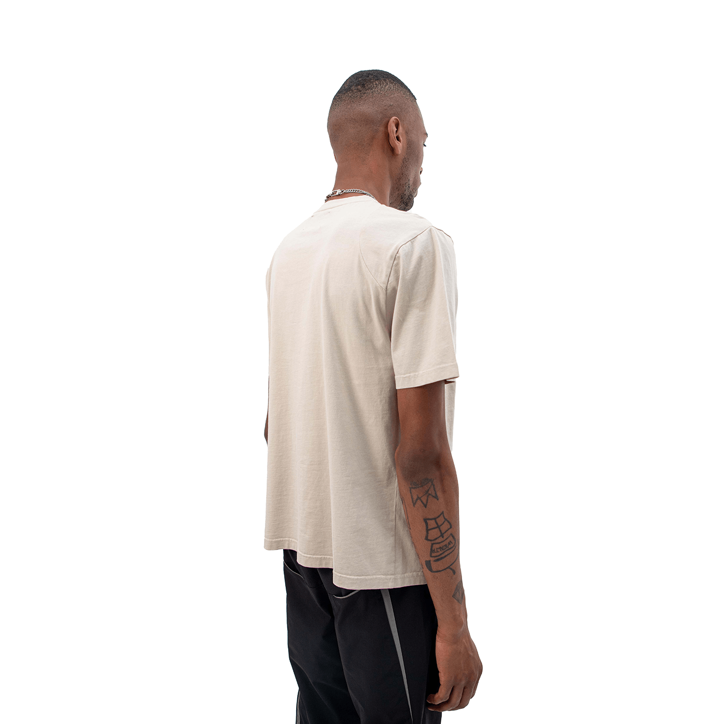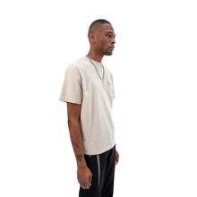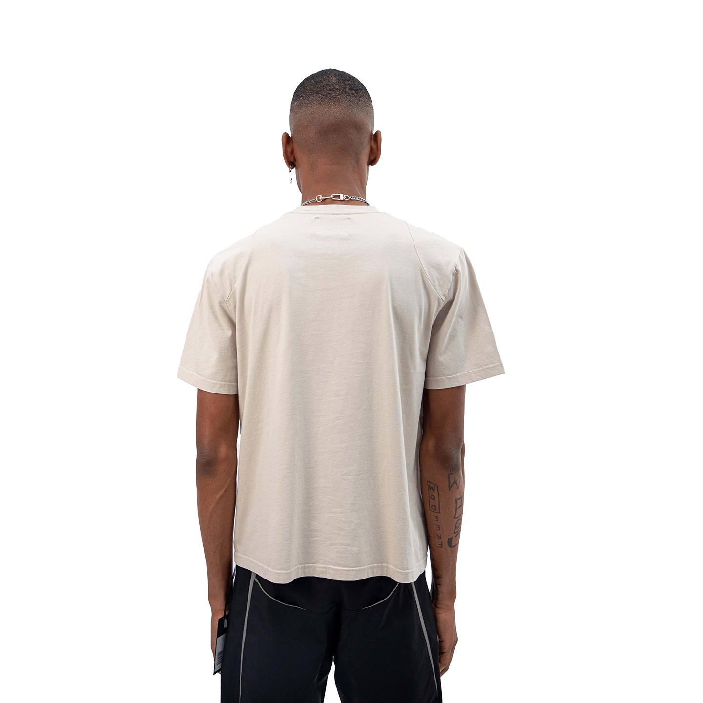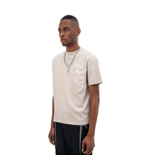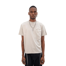 Heliot Emil t-shirt in off-white beige. Nylon shaped pocket with blind zipper at left chest.