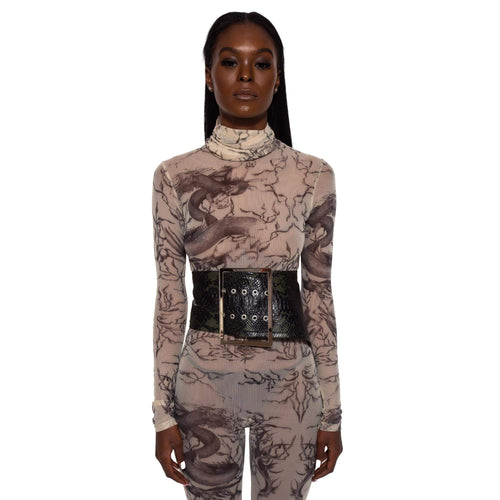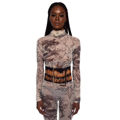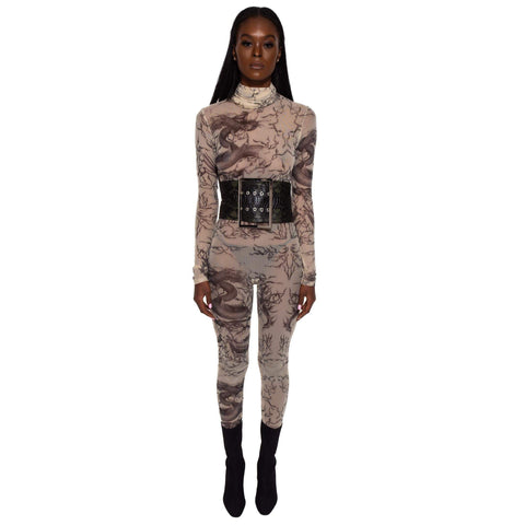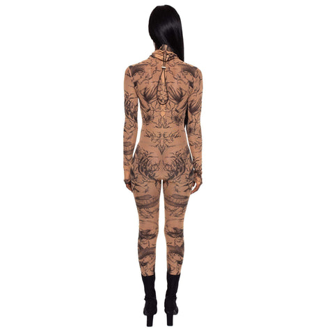 Skinwalker Hybrid Printed Mesh Catsuit (Dark Nude)