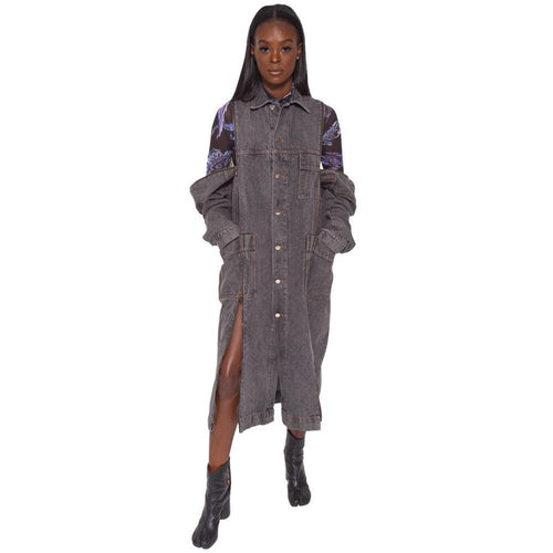 Kinnara Dragon Print Denim Shirt (Lime Green Dragon)