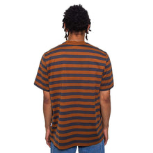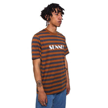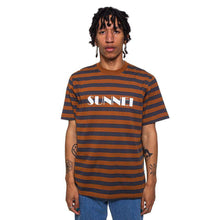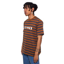 BROWN STRIPED T-SHIRT IN COTTON. WHITE LOGO PRINT ON THE FRONT.