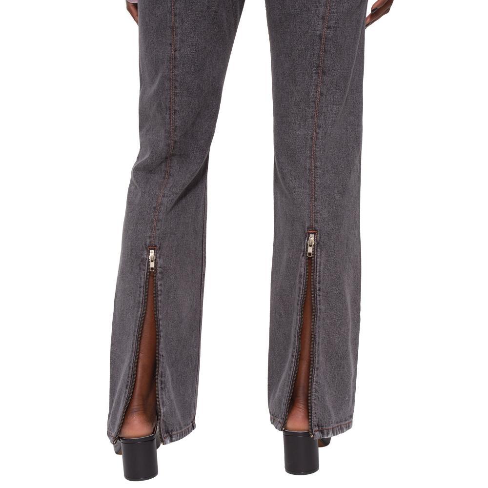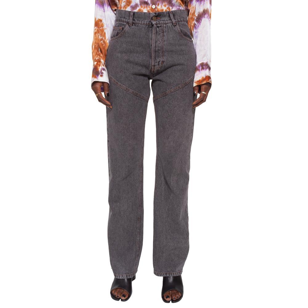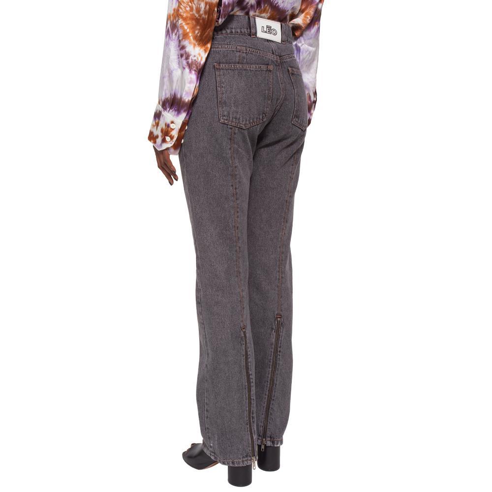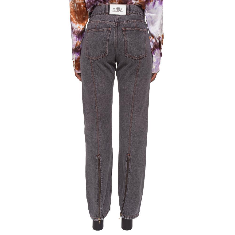 From LĒO Spring/Summer '22 collection 'Aura.' Washed grey denim with zippered slits down the cback alf of both legs. Regular fit, straight cut, heavy weight denim.