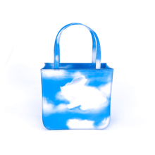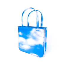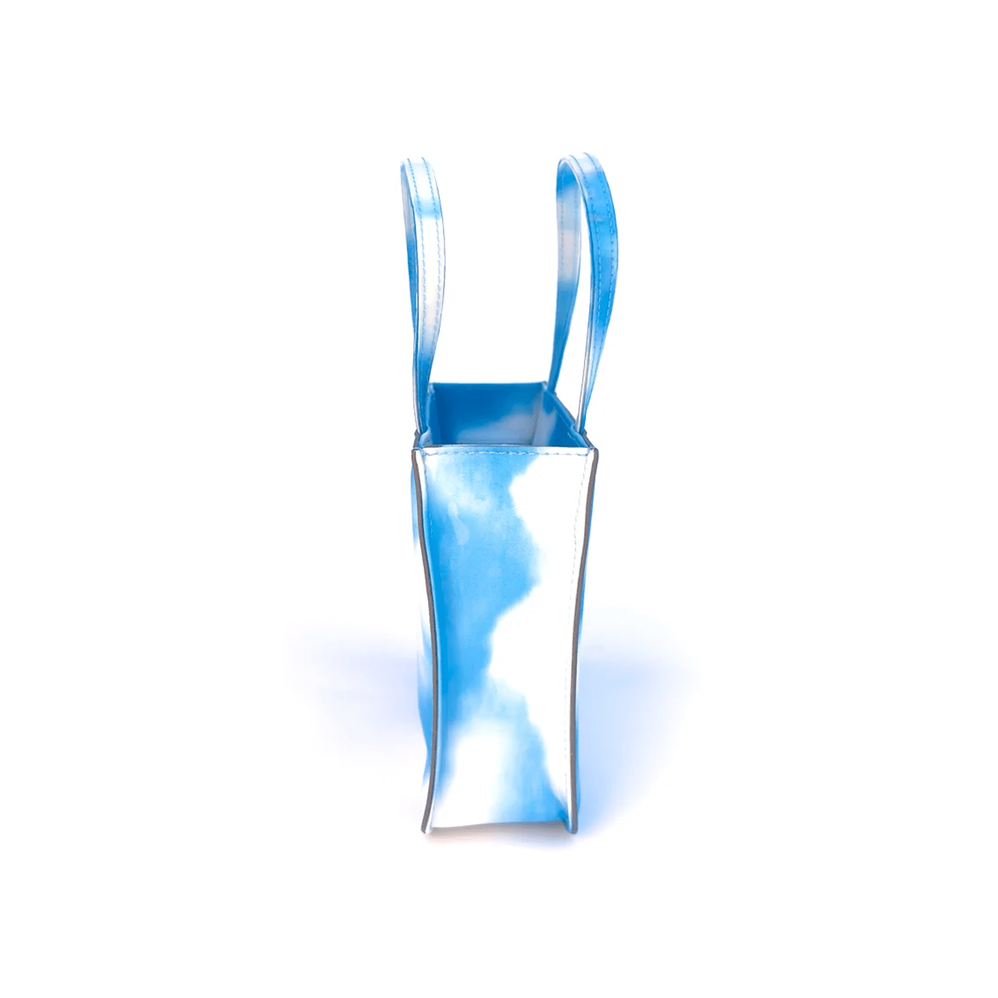 100% Waterpoof Rubber mini tote made from a 'holographic' 3D Cloudy Sky print on *lenticular textile. Adjustable strap boasts two distinct settings, allowing you to effortlessly switch between shoulder and cross-body lengths.