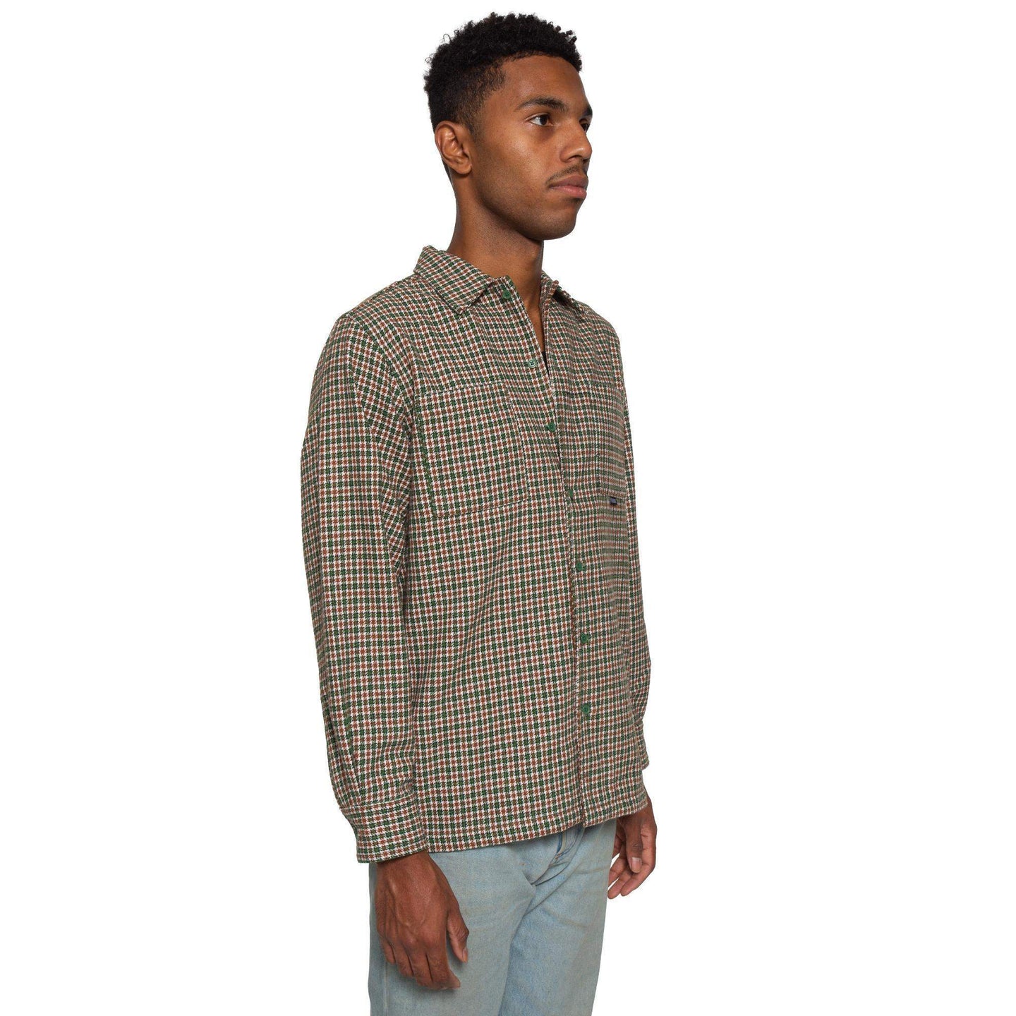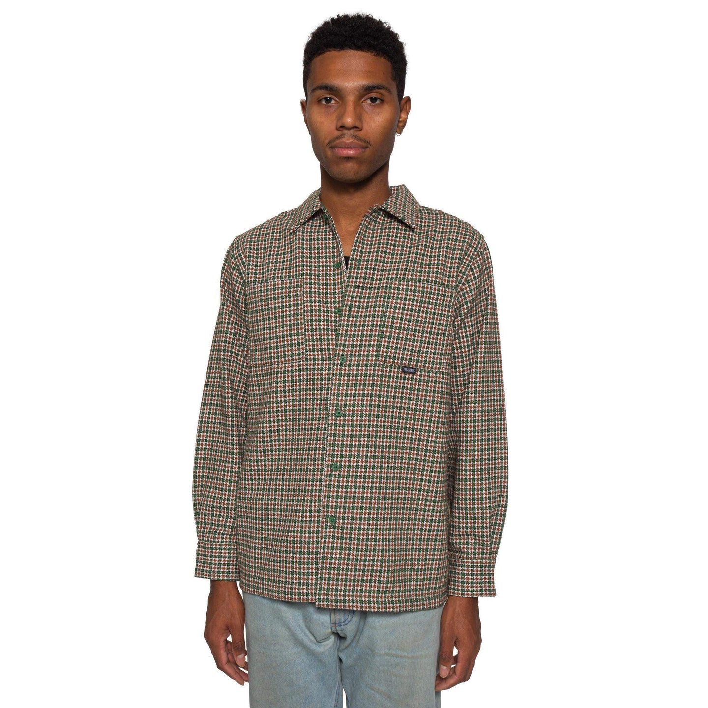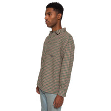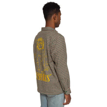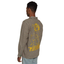 Premium heavy weight cotton Plaid button down. Two large pockets on chest. Embroidered graphic on back by artist Alexander Stewart.