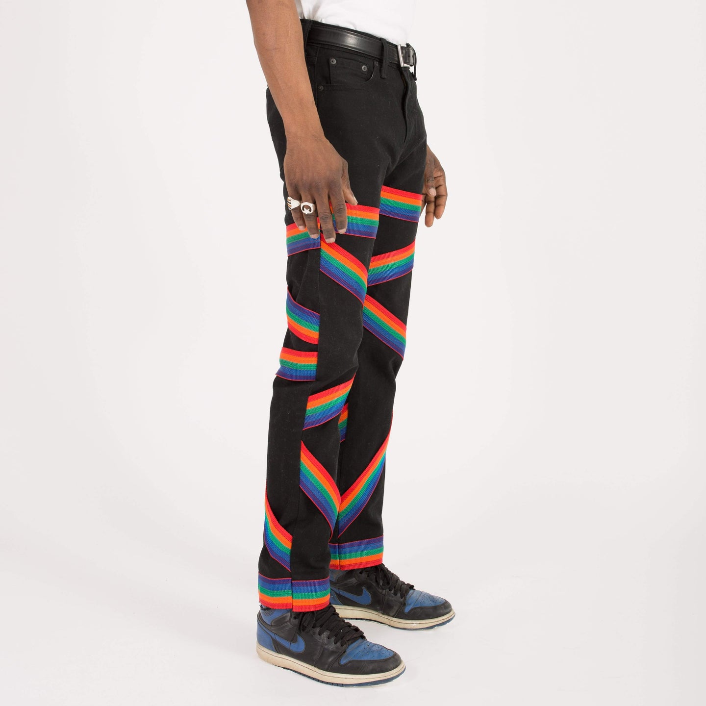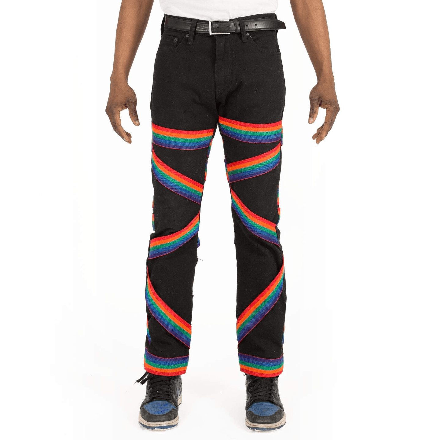 More than 10 rainbow bondage straps wrap around each leg keeping cops and nosy neighbors out of your pockets. These might b harder than playing Mario Kart with both hands tied behind your back. ⁞ ි _ʖ ි ⁞