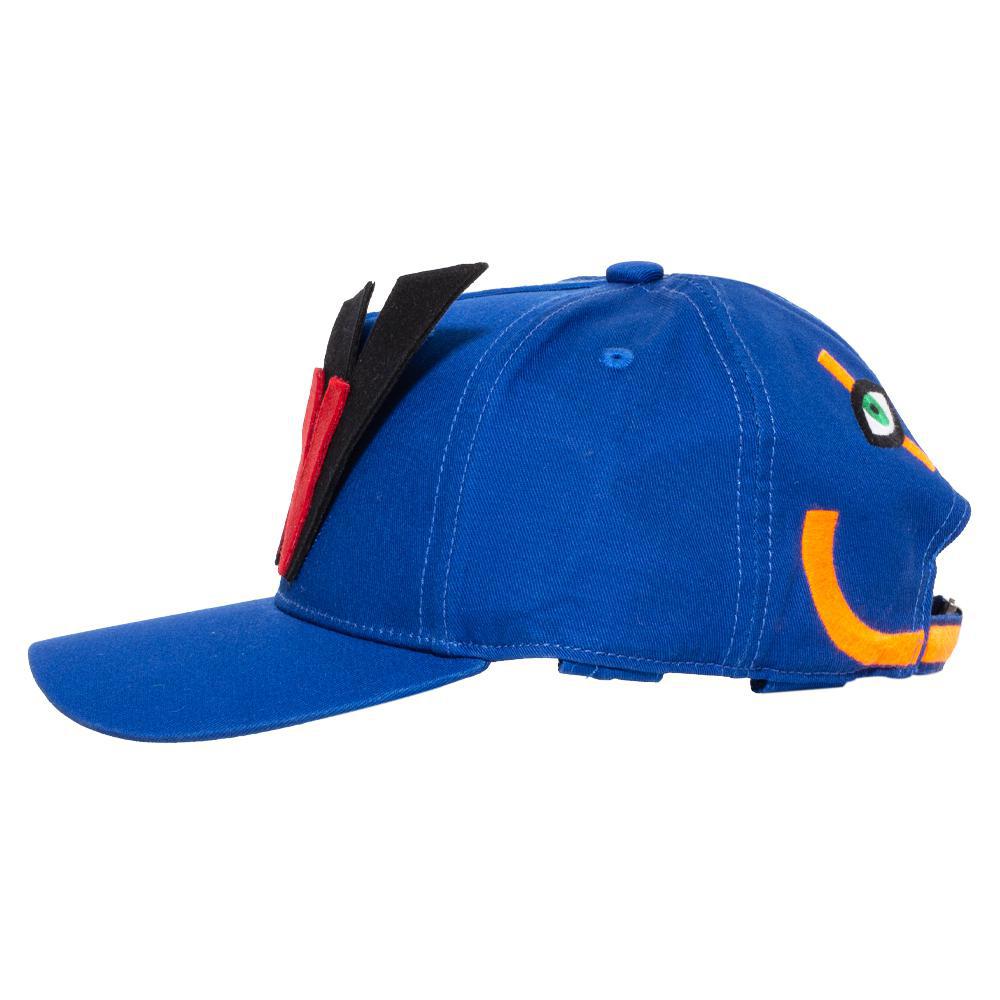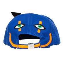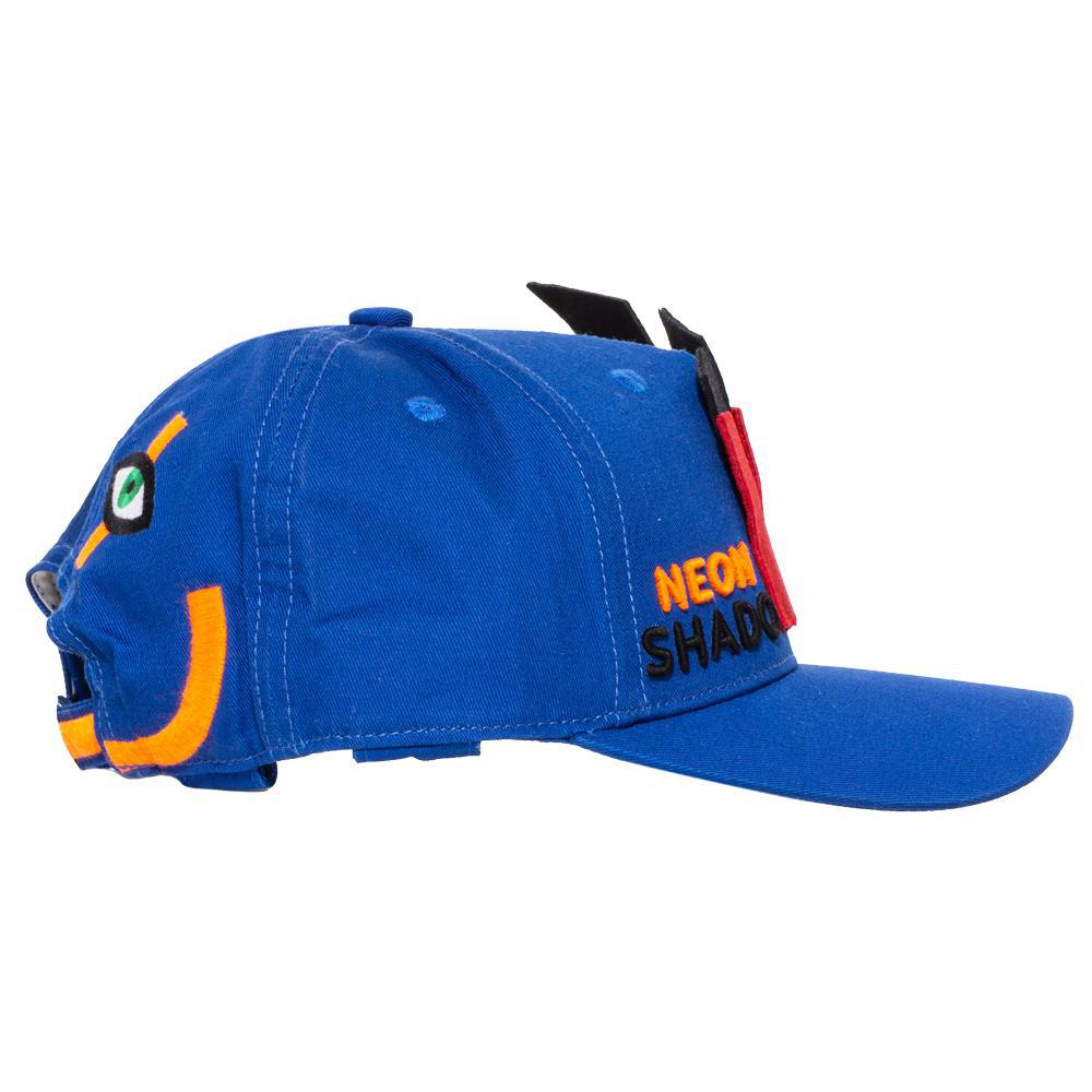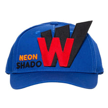 Blue strap back cap with collection title, “Neon Shadow,” on front, incorporating a massive “W” patch logo. Eyeball embroideries on back of cap with a curious orange smile embroidery across the strap sit ready to greet anyone behind you.