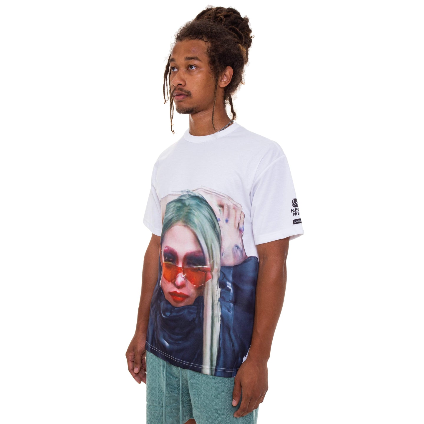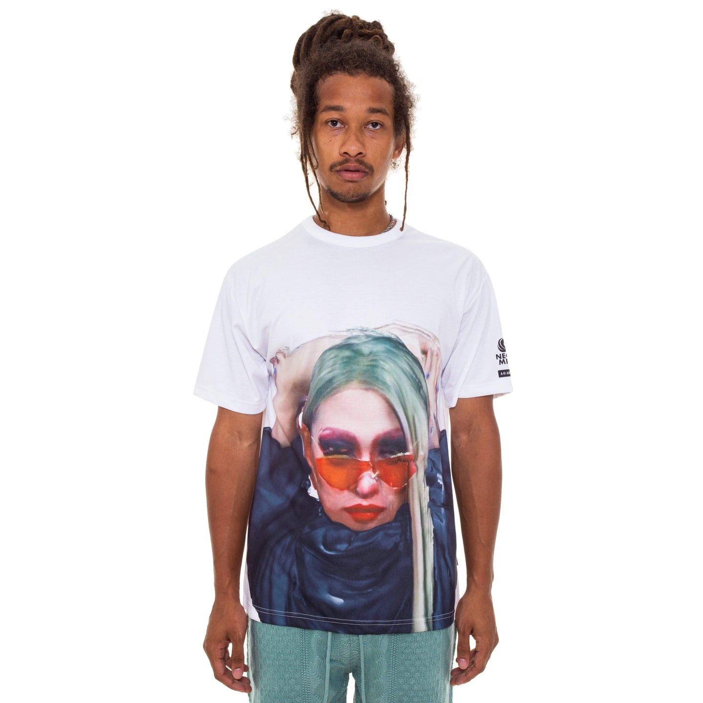 Drag Queen Performance Team Neon Milk Collaboration T-shirt. White polyester jersey fabric for digital printing. High-twist yarn to make ventilation easier and discharge sweat. It is recommended to hand wash inside out with cold water and laying flat or hang drying to preserve shape and color.