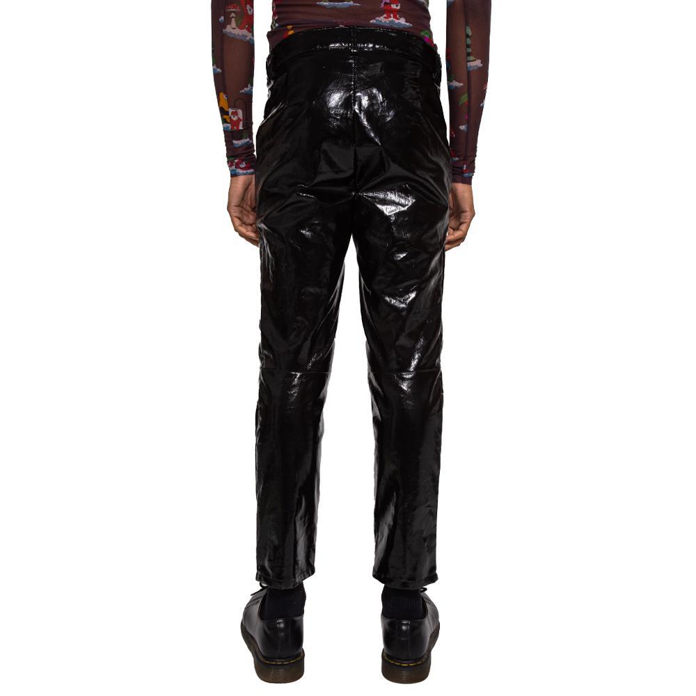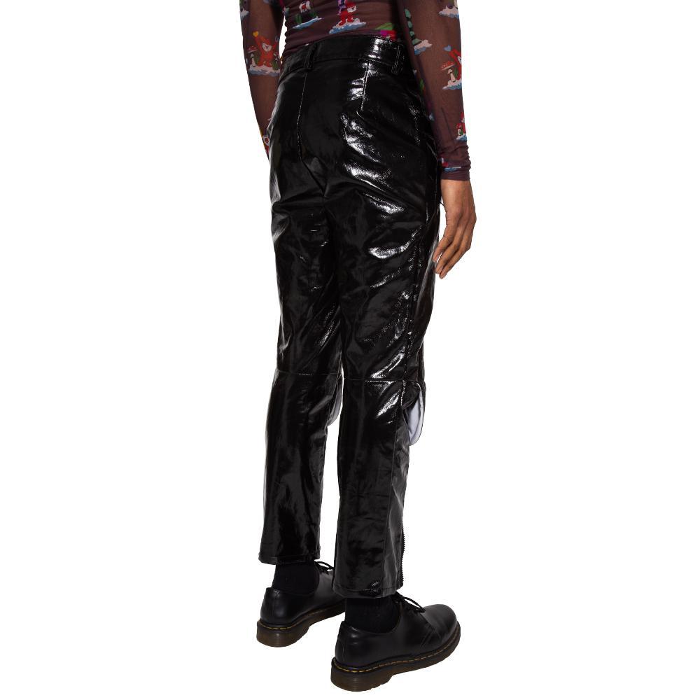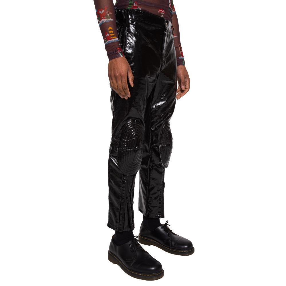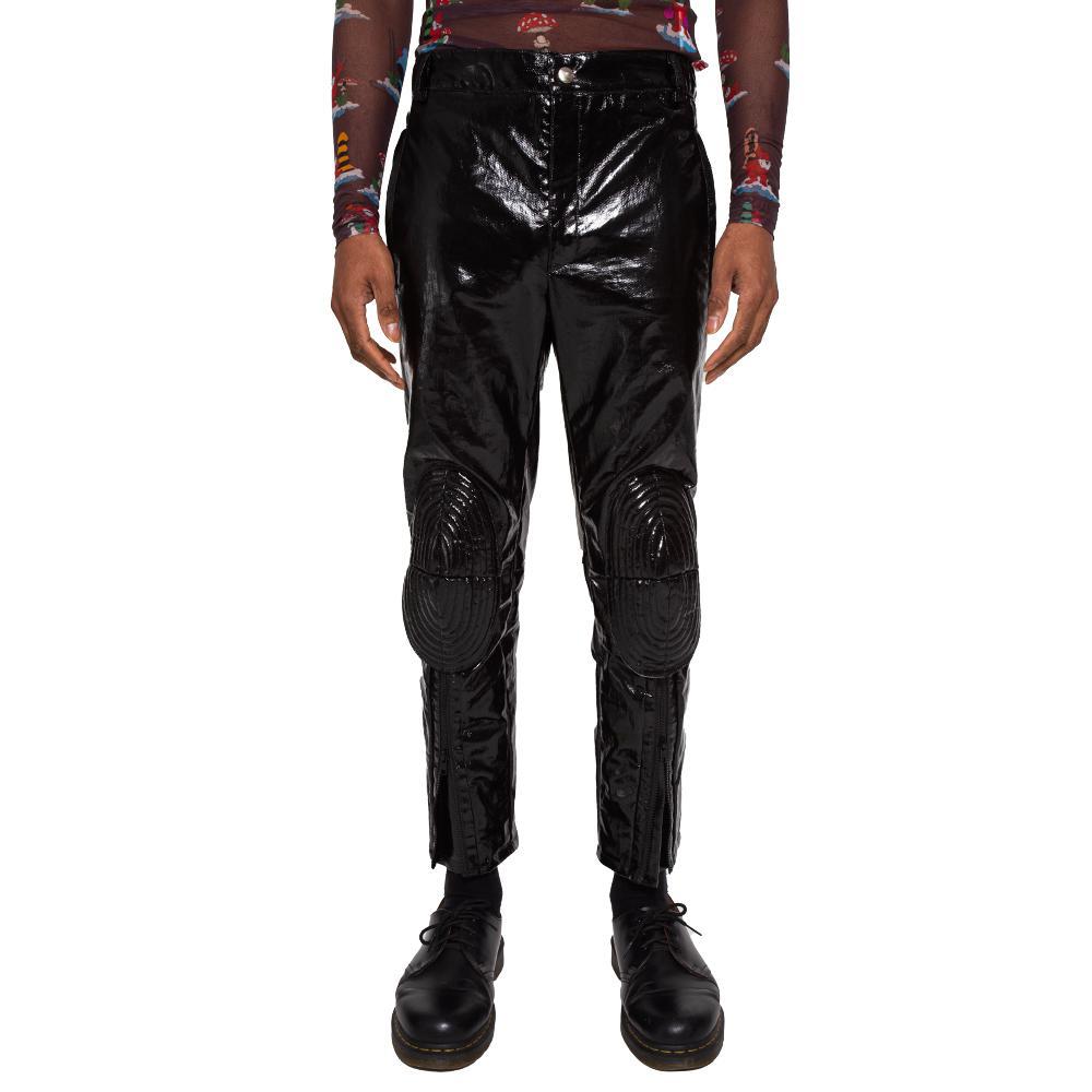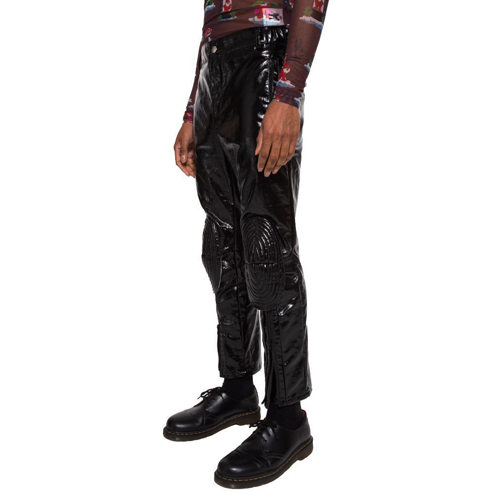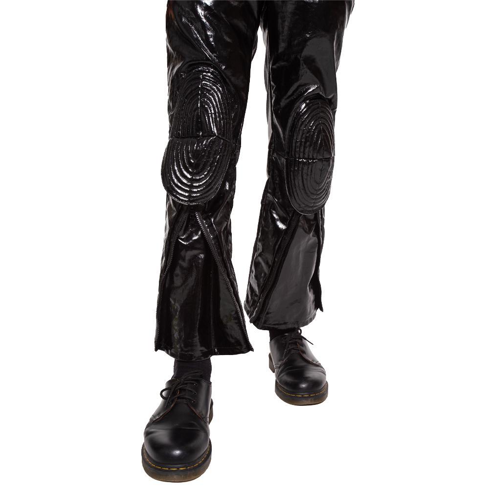 Black pants in a unique fabric blend offer a shine that has been rumored to be seen from outer space. Biker knee pads on each knee with zipper flares on the shins will have you prepared to “Rock out with your P-Cock out,” in any situation.