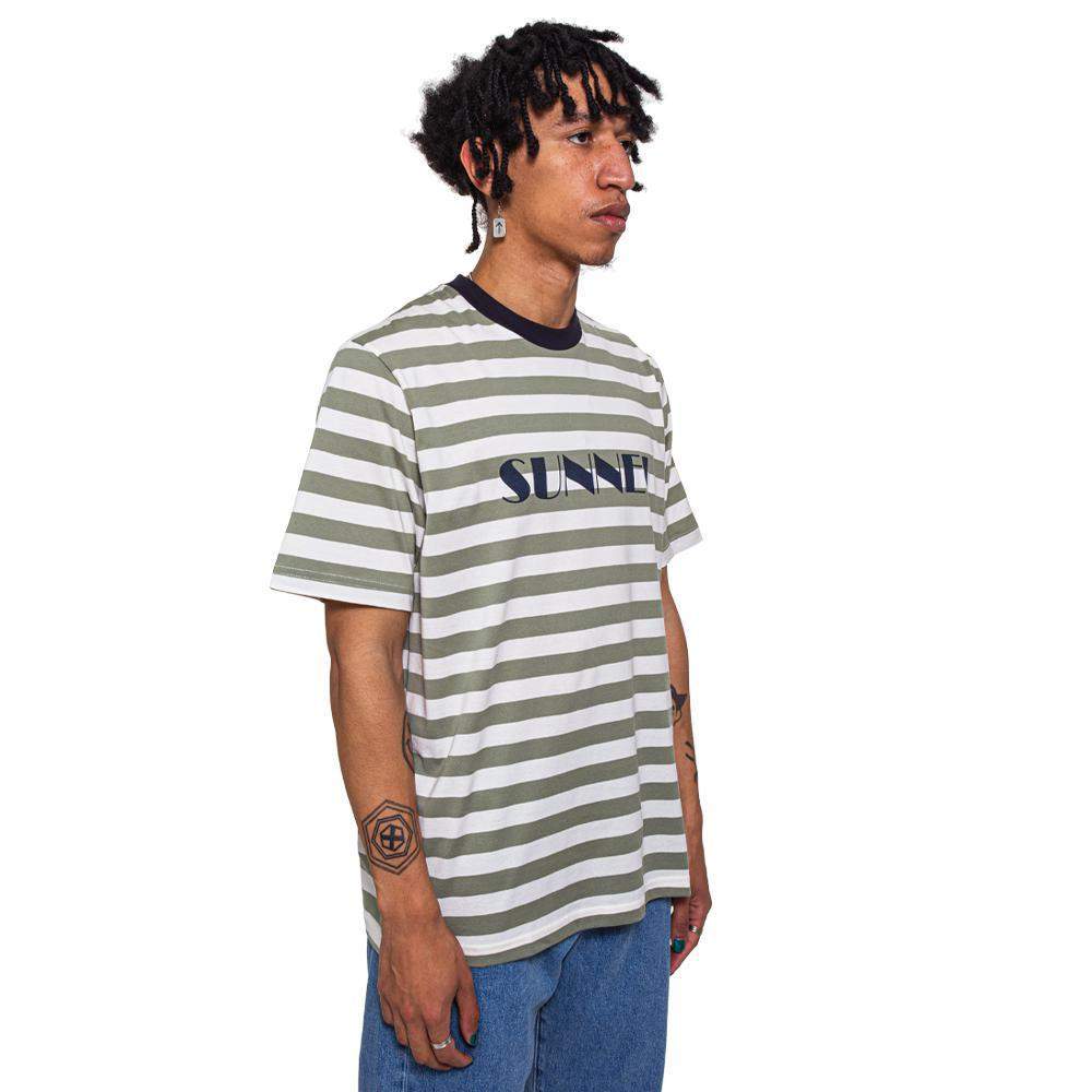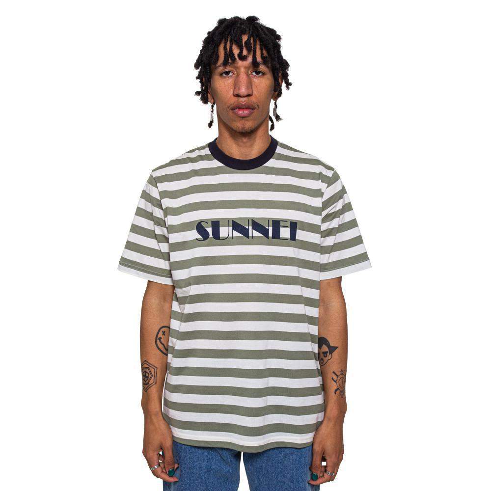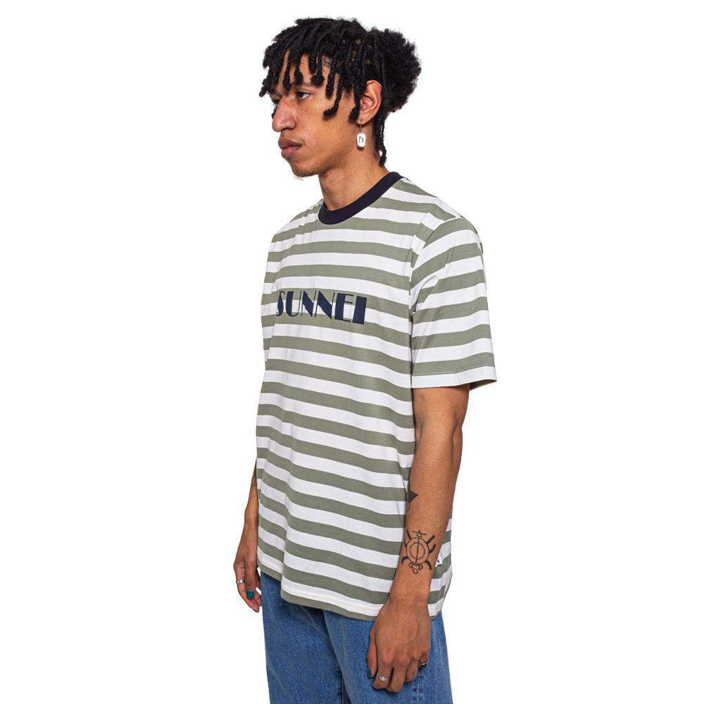 CREAM AND OLIVE STRIPED T-SHIRT IN COTTON. LOGO PRINT ON THE FRONT AND CONTRAST CREWNECK.